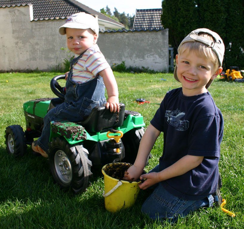 Något av det bästa som finns när man är liten är att leka med gegga. Både Ludvig och Felix gör "klegga" så fort de hittar lite vatten, en hink och en spade. Det betyder att det händer rätt så ofta och det betyder i sin tur att mamma får tvätta och pappa får dammsuga.